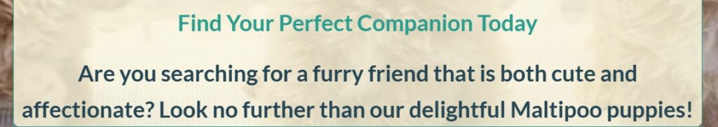 Finding your dream Maltipoo has never been easier. We offer a wide selection of colors and patterns, so you can choose the one that captures your heart. Our experienced team is dedicated to helping you find the perfect match based on your preferences and lifestyle.